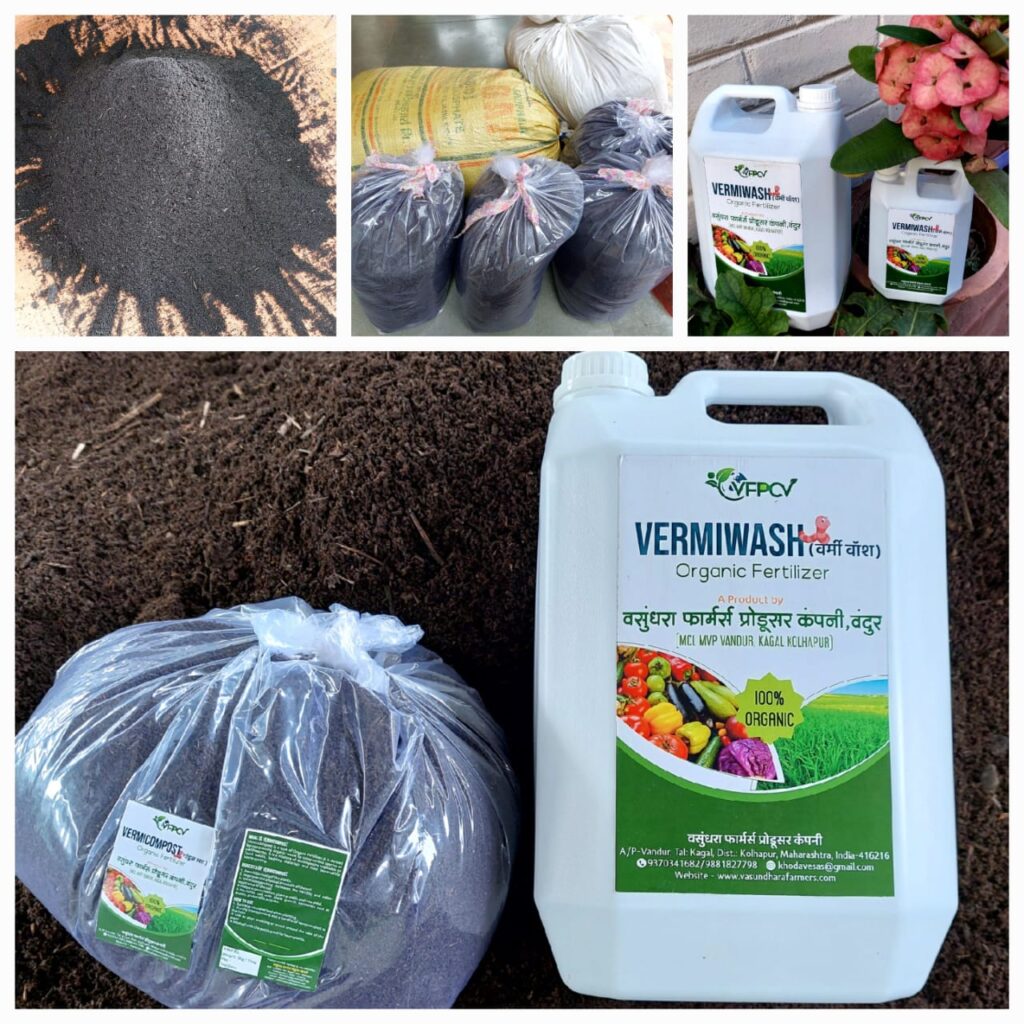 Vasundhara vermi wash is a liquid fertilizer extracted from vermi composting beds. It is a pure collection of excretory products and mucus secretions of worms. it is rich in plant growth hormones micronutrients. It is sprayed on plant leaves or can be feed at roots of plants for better growth It also prevents fungal bacterial pathogen and pests. it is almost 85% more rich in phosphorus, calcium and magnesium and having higher amount of micro nutrients than vermi compost. it is diluted with water in a ratio of 1:10 & then sprayed on plants. It helps to increase production of crop.